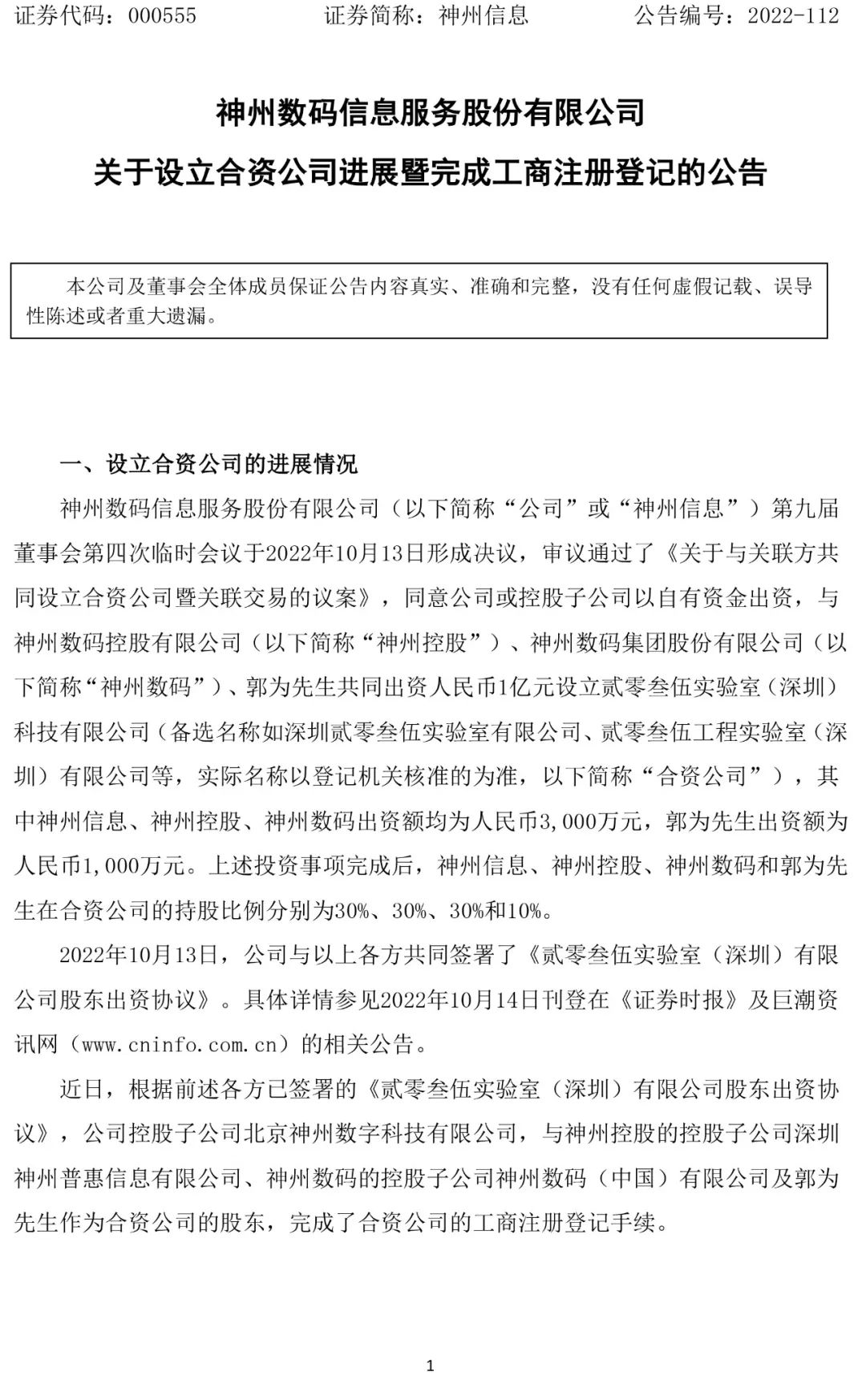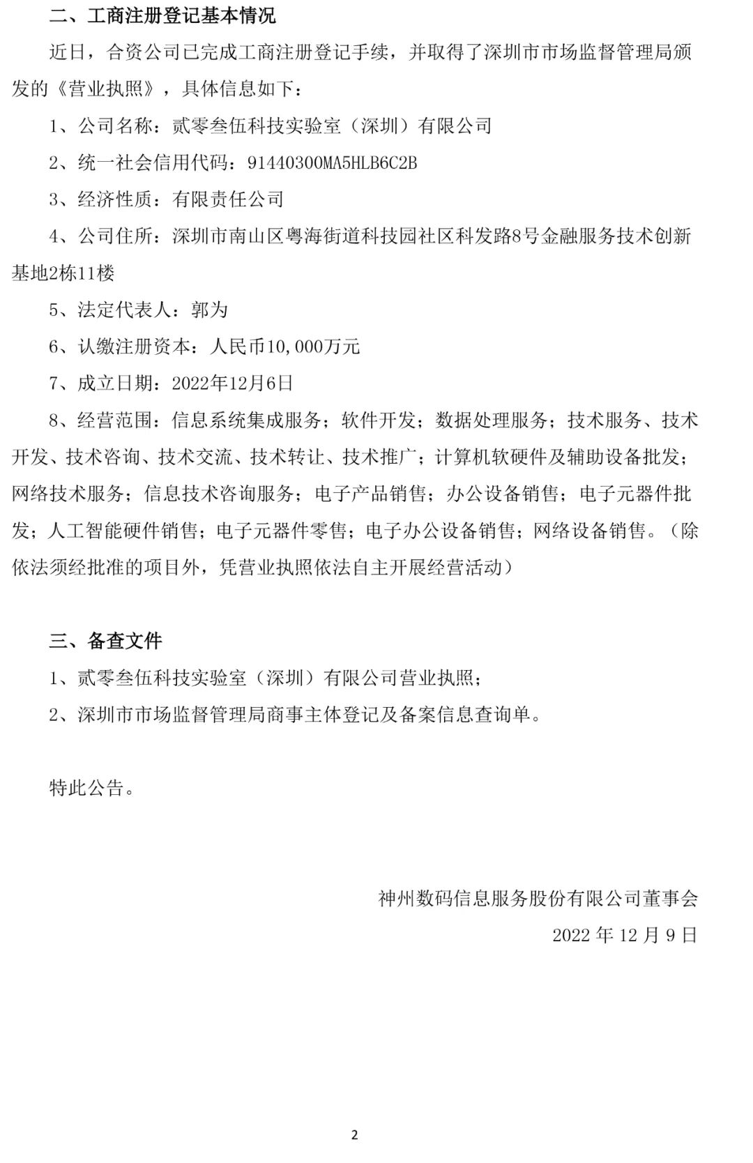 710公海信息服务集团股份有限公司关于设立合资公司进展暨完成工商注册登记的公告