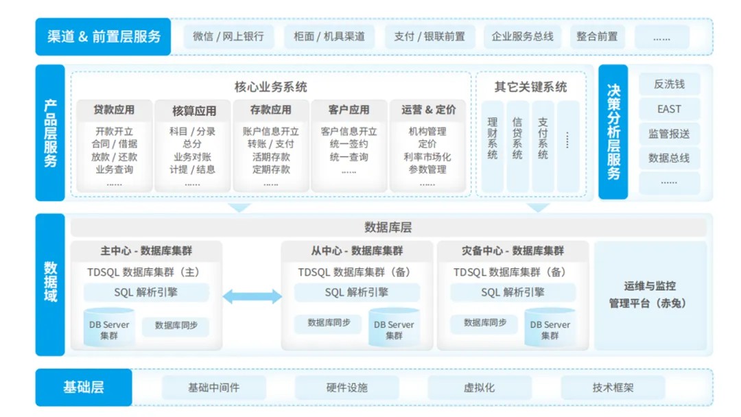 项目采用腾讯TDSQL作为技术底座,将核心系统数据使用hash方式平均分布在集群物理服务器节点上,依托横向线性扩展和多副本读写技术,实现了高并发处理和高可用容灾保障。